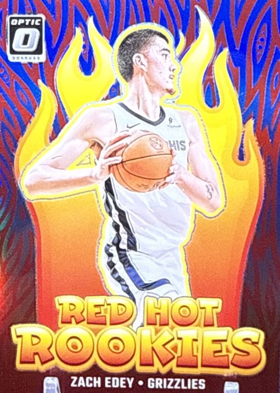 The Zach Edey 2024 Optic #4 Red Hot Rookies - Blue /49 card in Raw condition has moved down -$7.75 (-58.5%) in the last 30 days and was last sold for $5.50 .