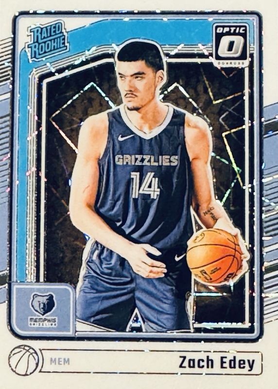 This card is 1 of 141 Zach Edey's card variations in the 2024 Optic set being tracked by Sports Card Investor, including Base, Blue Velocity, Checkerboard, Choice, and Fast Break.