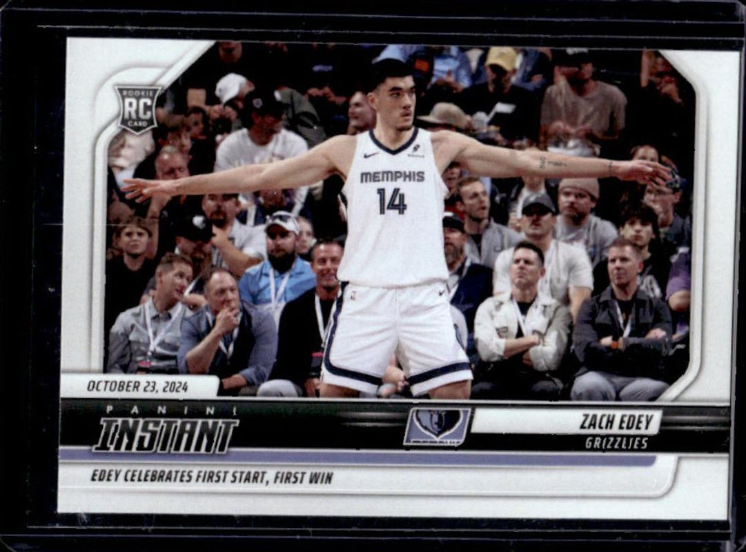 The Zach Edey 2024 Panini Instant #33 Base Rookie card is 1 of 26 Zach Edey's card variations in the 2024 Panini Instant set being tracked by Sports Card Investor, including #292 Base, #76 Base, #62 Base, #466 Base, and #4 Base.