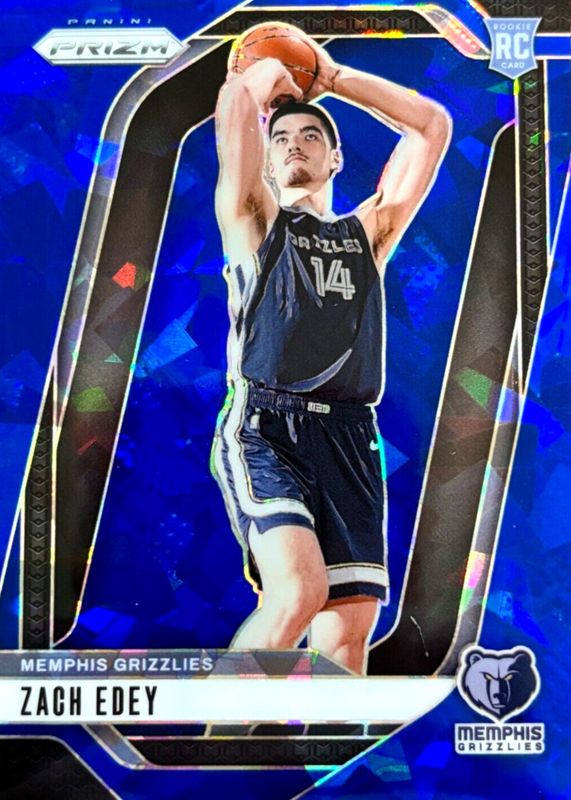 The Zach Edey 2024 Prizm #249 Blue Ice /125 Rookie card in Raw condition has moved up $3.50 (+17.5%) in the last 30 days and was last sold for $23.50 .