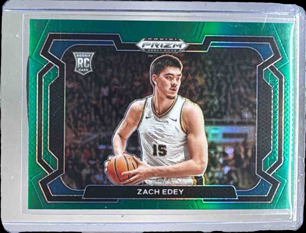 The Zach Edey 2024 Prizm Draft Picks #1b Green Rookie card is 1 of 230 Zach Edey's card variations in the 2024 Prizm Draft Picks set being tracked by Sports Card Investor, including #1 Base, #1b Base, #1 Variation, #1 Green, and #1b Green Wave.
