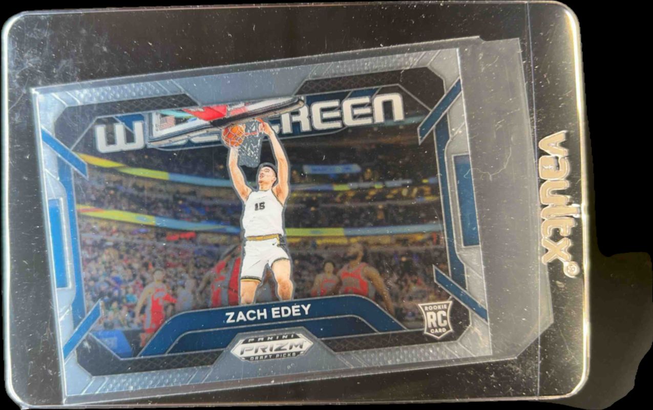 The Zach Edey 2024 Prizm Draft Picks #7 Widescreen Rookie card is 1 of 230 Zach Edey's card variations in the 2024 Prizm Draft Picks set being tracked by Sports Card Investor, including #1 Base, #1b Base, #1 Variation, #1 Green, and #1b Green.