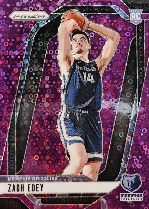 Zach Edey 2024-25 Panini Prizm 55/75 Purple Disco RC Grizzlies #249 +