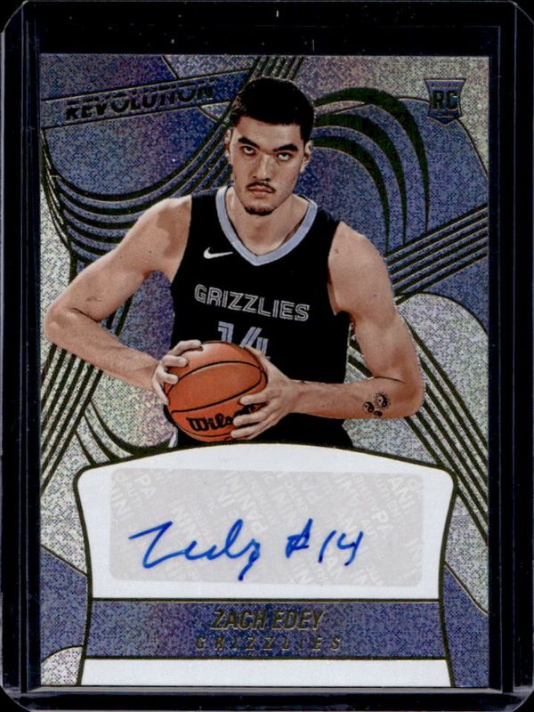 The Zach Edey 2024 Revolution #RA-EDY Rookie Autographs card is 1 of 81 Zach Edey's card variations in the 2024 Revolution set being tracked by Sports Card Investor, including Base, Astro, Blue Storm, Chinese New Year, and Fractal.