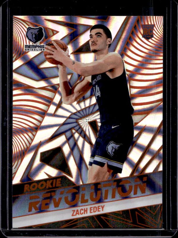 The Zach Edey 2024 Revolution #12 Rookie Revolution - Sunburst /75 card is 1 of 81 Zach Edey's card variations in the 2024 Revolution set being tracked by Sports Card Investor, including Base, Astro, Blue Storm, Chinese New Year, and Fractal.