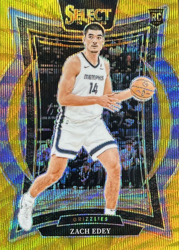 The Zach Edey 2024 Select #98 Concourse Gold Wave /10 Rookie card in Raw condition has moved down -$177 (-77.6%) in the last 30 days and was last sold for $51.00 .
