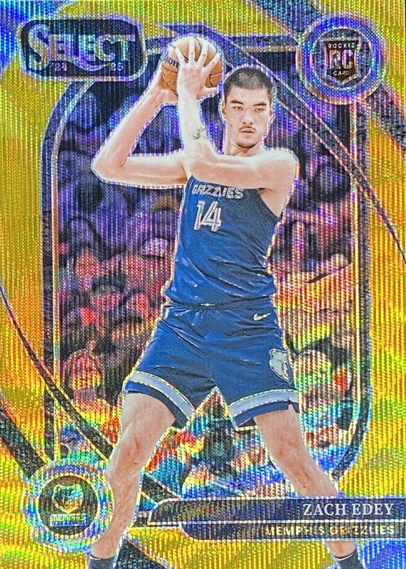 2024-25 Select Gold Wave Prizms #280 Zach Edey #/10 Rookie RC Memphis Grizzlies