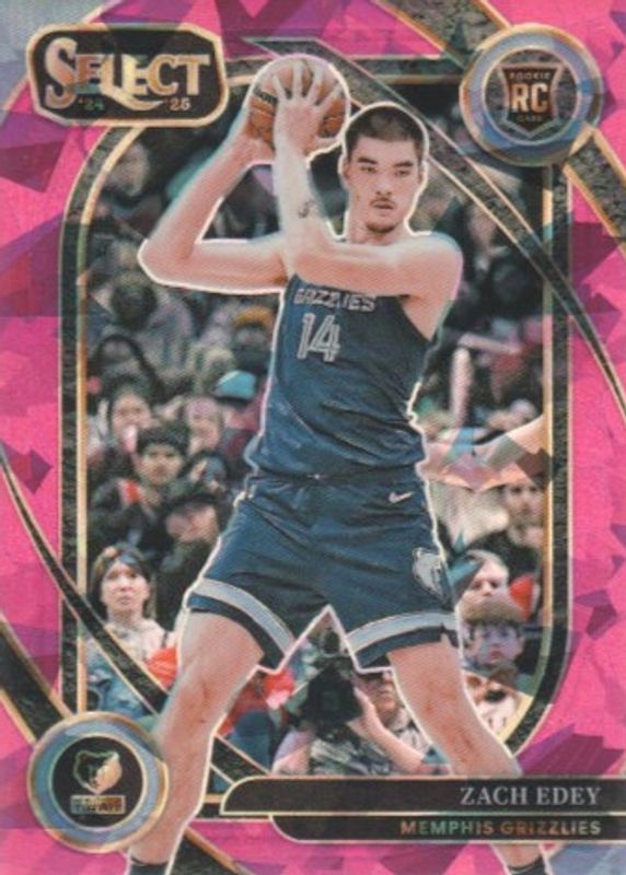 The Zach Edey 2024 Select #280 Courtside Pink Cracked Ice /99 Rookie card in Raw condition has not changed in price in the last 30 days and was last sold for $0.99 .