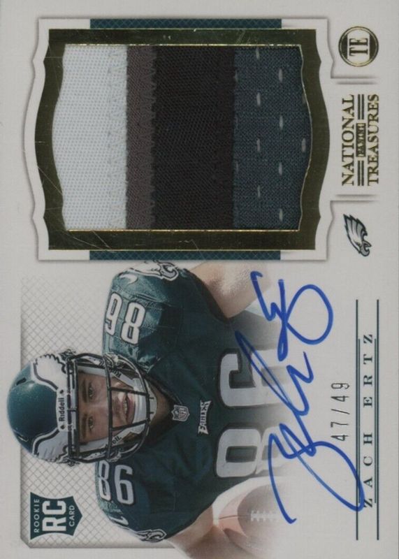 Zach Ertz 2013 National Treasures #240 Rookie Patch Auto - Gold /49 RAW Price Guide