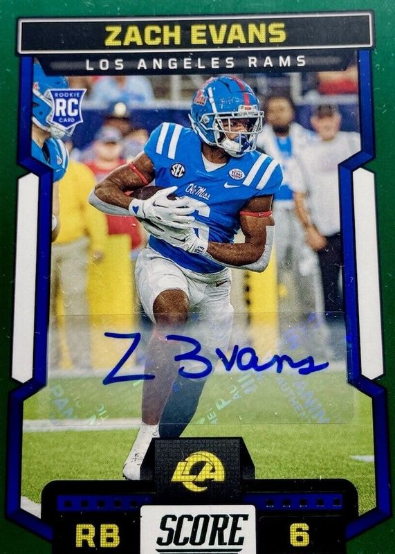 2023 Score Green Auto Zach Evans #319 Rookie Rebels Rams RC 🔥🔥🔥