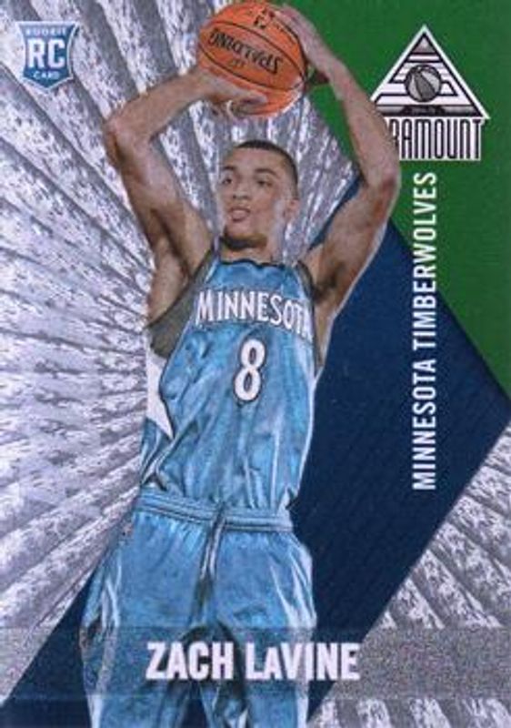The Zach LaVine 2014 Paramount #37 Base /25 Rookie card is 1 of 18 Zach LaVine's card variations in the 2014 Paramount set being tracked by Sports Card Investor, including Base /25, Bronze /50, Blue /25, Gold /10, and Next Day Autographs /100.