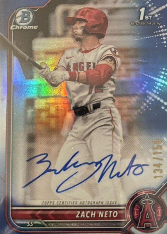 Zach Neto 2022 Bowman Chrome Draft 1st Blue Refractor Auto RC /150 Angels