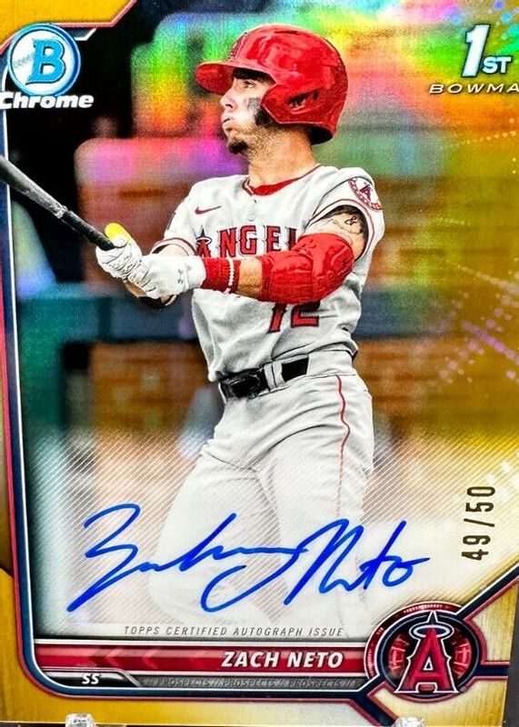 Zach Neto 2022 Bowman Draft #CDA-ZN Chrome DP Auto - Gold Refractor /50 (1st) RAW Price Guide