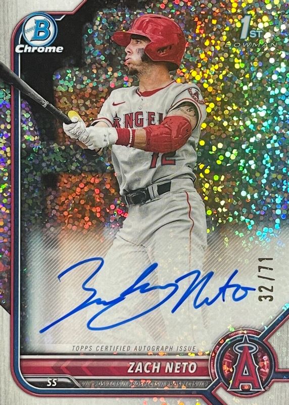2022 Bowman Chrome Draft Zach Neto Sparkle Refractor Auto /71 Angela 1st