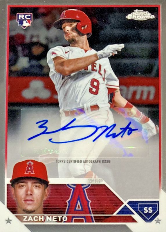 The Zach Neto 2023 Topps Chrome Update #AC-ZN Autographs Rookie card in Raw condition has moved up $12.00 (+26.7%) in the last 30 days and was last sold for $57.00 .