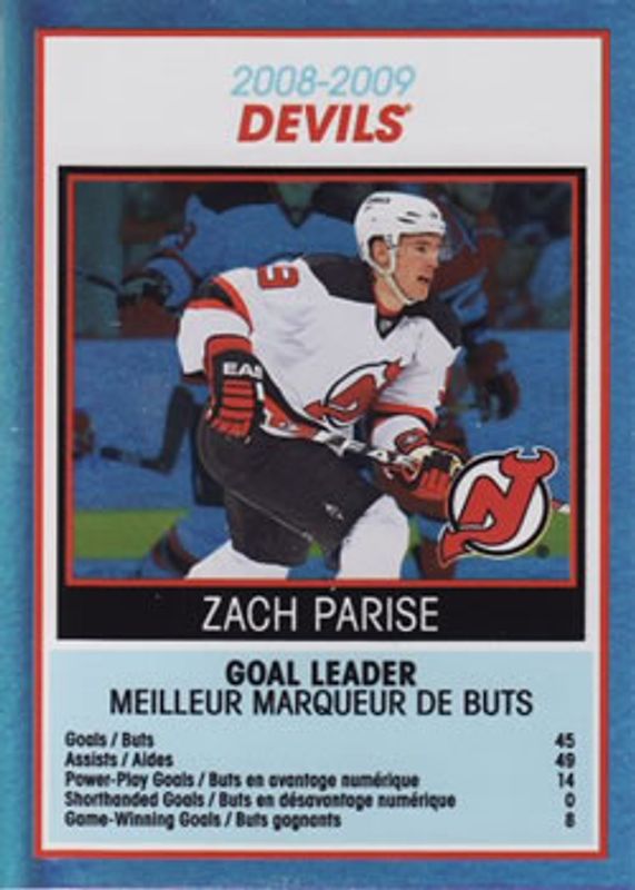 Zach Parise 2009 O-Pee-Chee #TC18 Team Checklists RAW Price Guide