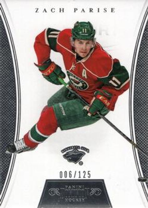 The Zach Parise 2012 Prime #31 2012 Panini Dominion /99 card is 1 of 30 Zach Parise's card variations in the 2012 Prime set being tracked by Sports Card Investor, including Base /249, HoloSilver /50, HoloGold /25, Black /3, and 2011 Prime Signatures /99.