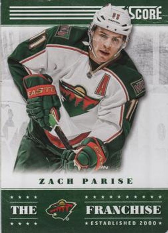 The Zach Parise 2013 Score #TF-14 The Franchise card is 1 of 7 Zach Parise's card variations in the 2013 Score set being tracked by Sports Card Investor, including Base, Black, Gold, Red, and Red Back.
