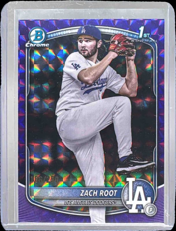 2025 Bowman Draft Zach Root Chrome Purple Geometric Refractor 1st #/250 Dodgers