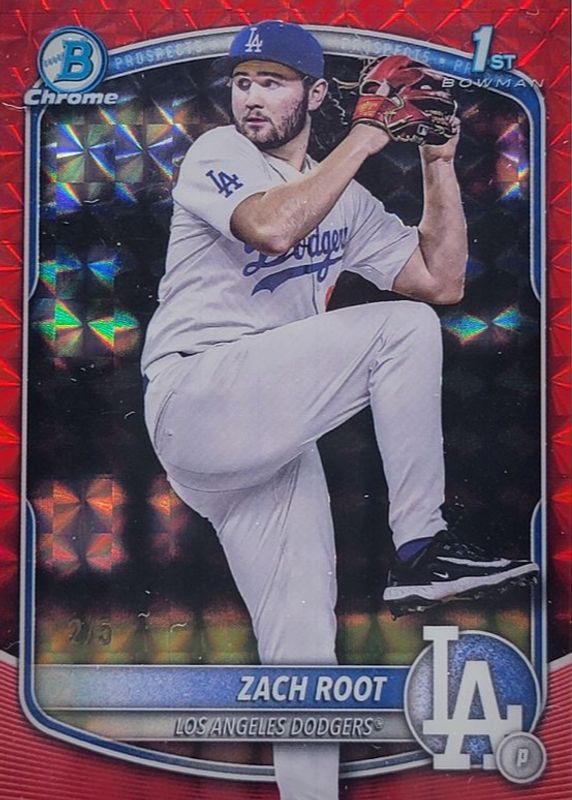 Auctions Ending Soon for Zach Root 2025 Bowman Draft #BDC-22 Chrome - Red Geometric Refractor /5 (1st) RAW