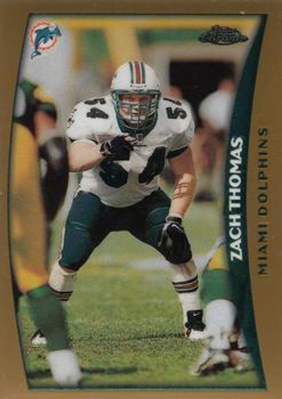 The Zach Thomas 1998 Topps Chrome #76 Base card is 1 of 2 Zach Thomas' card variations in the 1998 Topps Chrome set being tracked by Sports Card Investor, including Refractor.