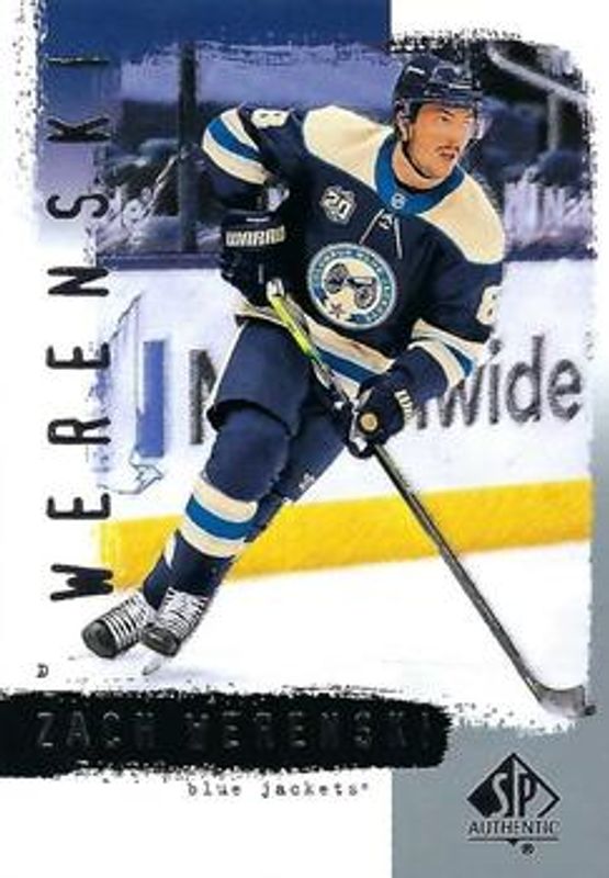 The Zach Werenski 2020 SP Authentic #R88 2000 Retro card is 1 of 6 Zach Werenski's card variations in the 2020 SP Authentic set being tracked by Sports Card Investor, including #88 Base /999, #88 Limited Red, #R88 2000 Retro Spectrum /100, #60 2019 SP Authentic Update I /5, and #RSOTT-ZW 2019 SP Authentic Update I /5.