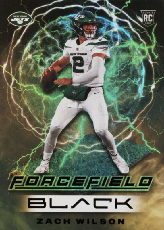 The Zach Wilson 2021 Black #FF-17 ForceField /(SSP) Rookie card in Raw condition has not changed in price in the last 30 days and was last sold for $14.50 .