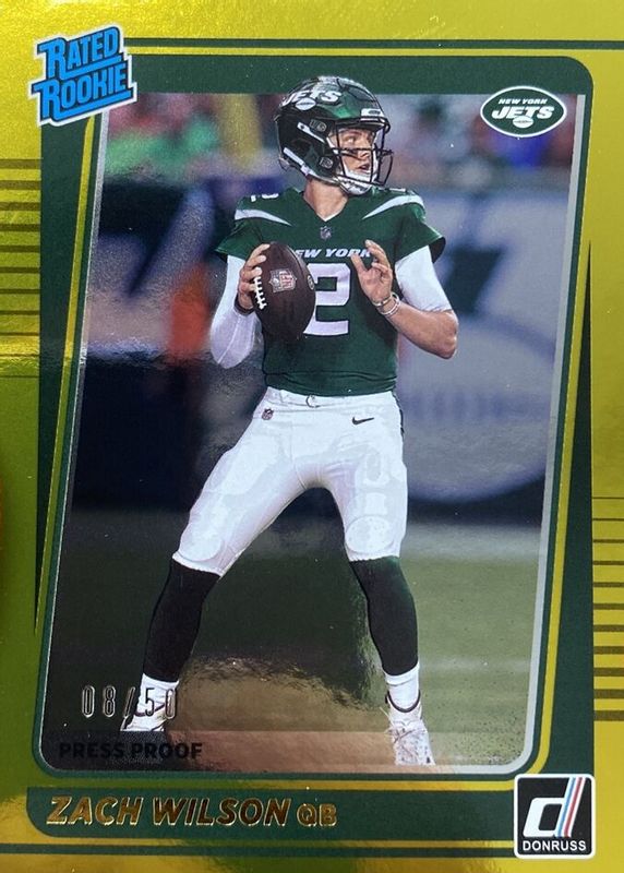 ZACH WILSON 2021 Panini Donruss Rated Rookie Card RC Gold Press Proof /50 JETS