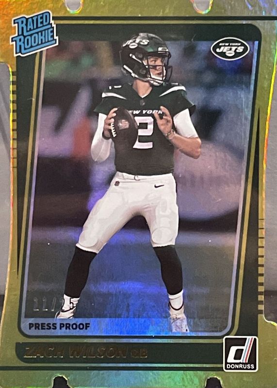 2021 Donruss Football Zach Wilson Rated Rookie Gold Press Proof Die Cut # 11/25
