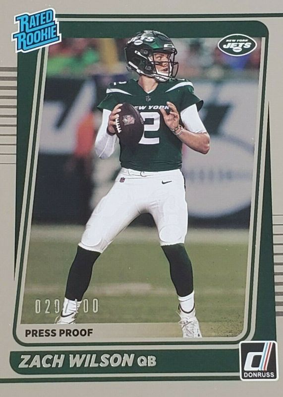 2021 Donruss Zach Wilson Silver Rated Rookie Press Proof 023/100