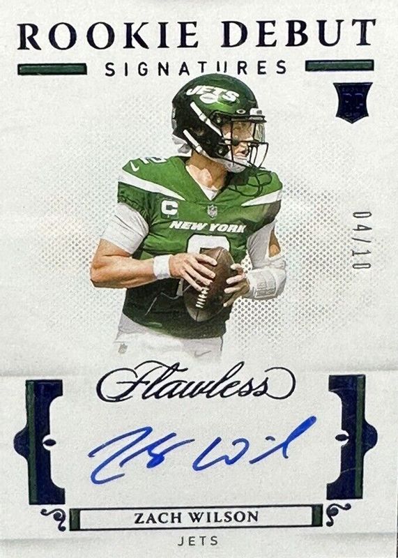 The Zach Wilson 2021 Flawless #RDS-ZWI Rookie Debut Signatures - Sapphire (/10) card in Raw condition has not changed in price in the last 30 days and was last sold for $194.50 .