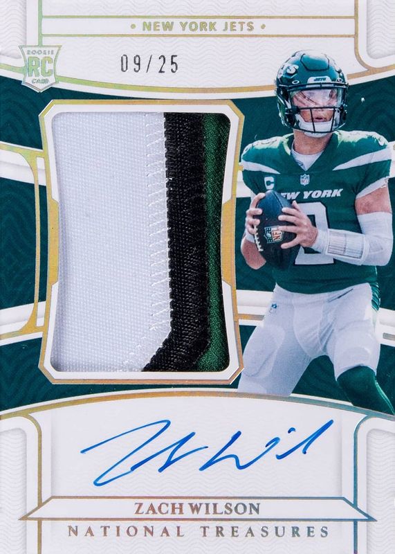 This card is 1 of 57 Zach Wilson's card variations in the 2021 National Treasures set being tracked by Sports Card Investor, including Rookie Patch Auto /99, Rookie Patch Auto - Green Jersey Number (/2), Rookie Patch Auto - Purple /49, Rookie Patch Auto - Stars & Stripes Holo Silver /25, and Rookie Patch Auto - Midnight /20.
