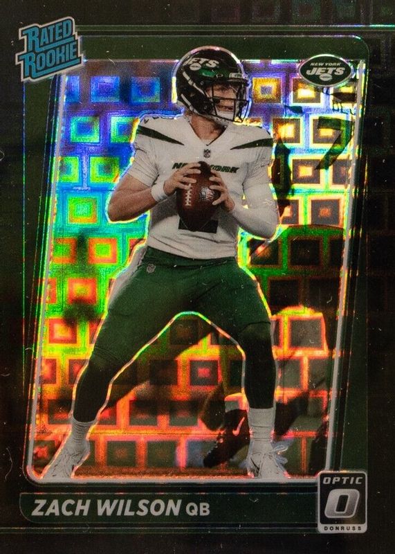 This card is 1 of 91 Zach Wilson's card variations in the 2021 Optic set being tracked by Sports Card Investor, including Base, Blue Hyper, Blue Scope, Bronze, and Green Velocity.