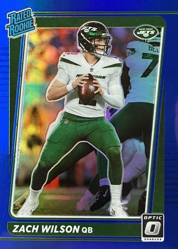 2021 Donruss Optic Zach Wilson BLUE HOLO RC #/179 RATED ROOKIE #202 JETS
