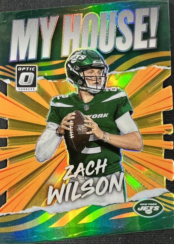 The Zach Wilson 2021 Optic #MH-2 My House! - Gold /10 Rookie card in Raw condition has not changed in price in the last 30 days and was last sold for $90.00 .