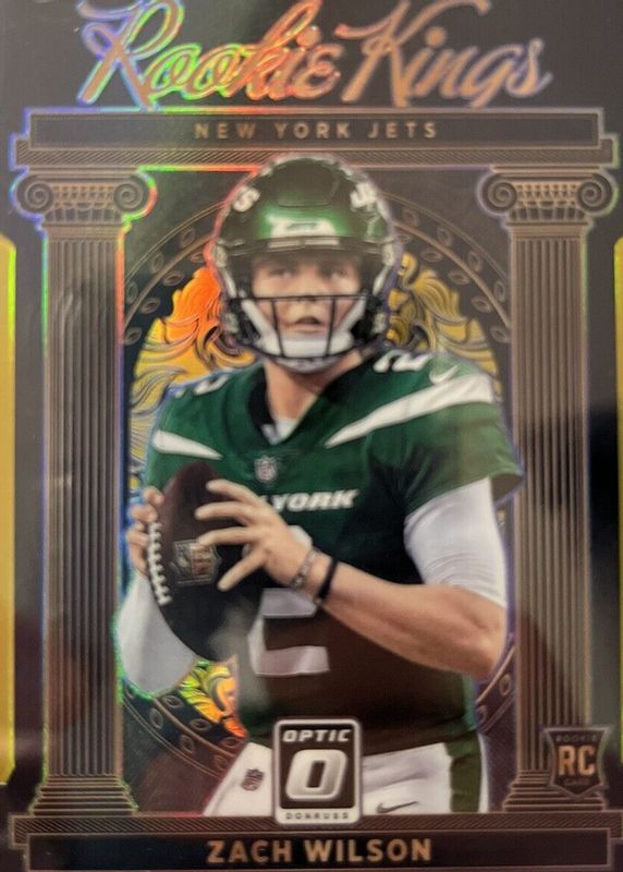 The Zach Wilson 2021 Optic #RK-2 Rookie Kings - Gold /10 card in Raw condition has not changed in price in the last 30 days and was last sold for $63.00 .