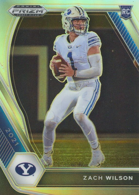 This card is 1 of 17 Zach Wilson's card variations in the 2021 Prizm Draft Picks set being tracked by Sports Card Investor, including Base, All-Americans, All-Americans - Green, All-Americans - Purple Wave, and All-Americans - Silver.