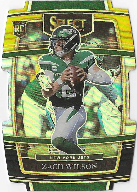 2021 Panini Select Football Prizm Zach Wilson Jets 44 RC Diecut Gold Black