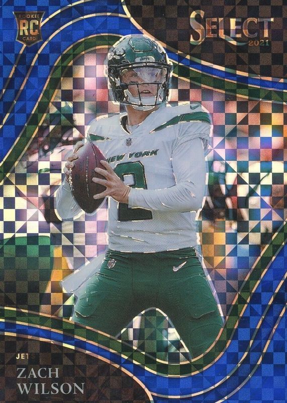 2021 Panini Select Field Level Zach Wilson Blue Prizm 13/49 # 344 Rookie Jets