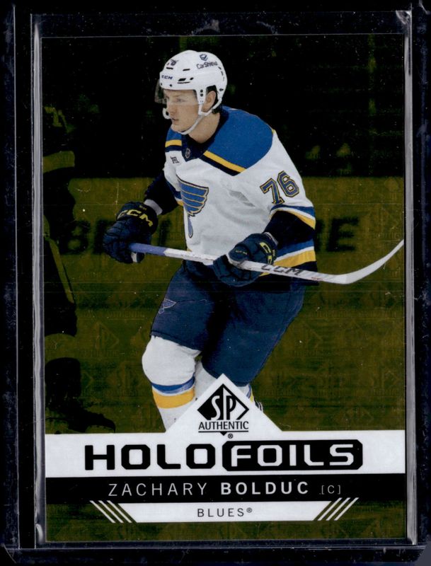 The Zachary Bolduc 2024 SP Authentic #HF-42 Holofoil Rookie card is 1 of 34 Zachary Bolduc's card variations in the 2024 SP Authentic set being tracked by Sports Card Investor, including Base /999, Auto Mystery Black, Future Watch Acetate, Limited Red, and Limited Blue /399.