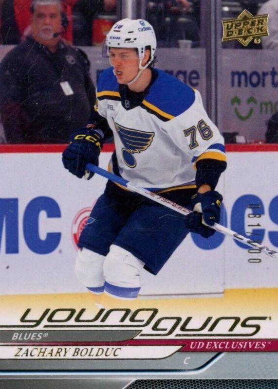 The Zachary Bolduc 2024 Upper Deck #201 Young Guns - UD Exclusives /100 Rookie card in Raw condition has not changed in price in the last 30 days and was last sold for $144.81 .