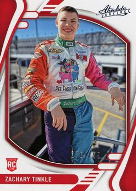 The Zachary Tinkle 2022 Chronicles NASCAR #20 Absolute Blue /199 card is 1 of 18 Zachary Tinkle's card variations in the 2022 Chronicles NASCAR set being tracked by Sports Card Investor, including Absolute, Absolute Autographs, Obsidian, Obsidian Signatures, and Absolute Red /99.