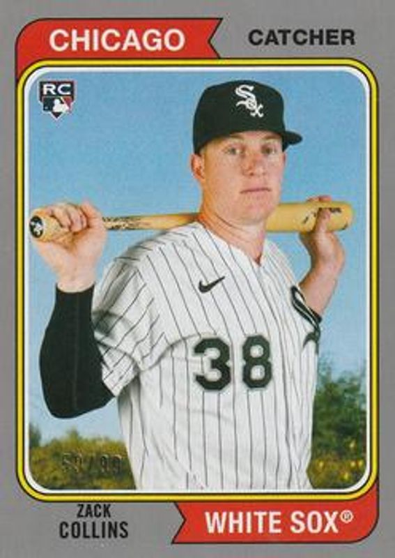 The Zack Collins 2020 Topps Archives #140 Silver /99 Rookie card is 1 of 14 Zack Collins' card variations in the 2020 Topps Archives set being tracked by Sports Card Investor, including Base, Silver Holo-Foil, Purple /175, Red /75, and Blue /25.