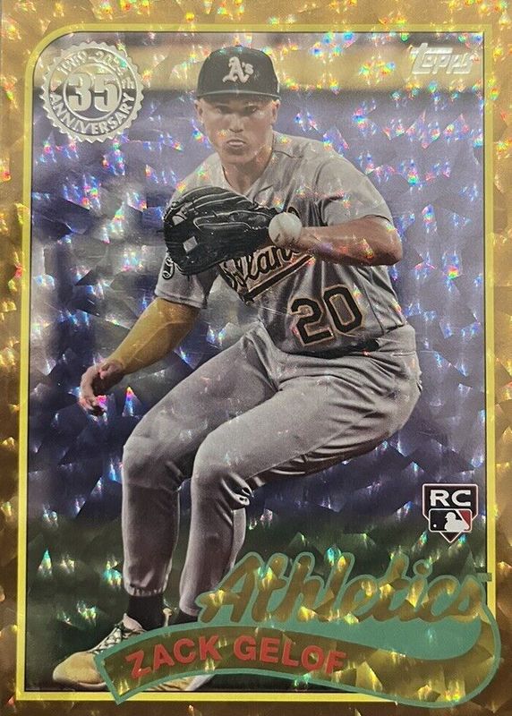 The Zack Gelof 2024 Topps #89B-90 1989 Topps - Gold Foil /50 Rookie card in Raw condition has not changed in price in the last 30 days and was last sold for $28.99 .