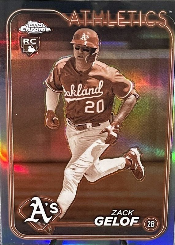 This card is 1 of 79 Zack Gelof's card variations in the 2024 Topps Chrome set being tracked by Sports Card Investor, including Base, Negative Refractor, Pink Refractor, Prism Refractor, and RayWave Refractor.