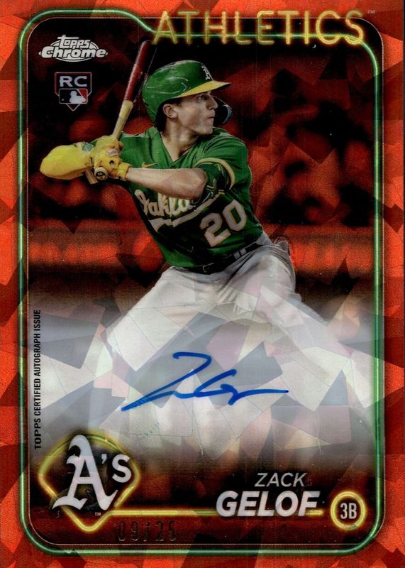 This card is 1 of 14 Zack Gelof's card variations in the 2024 Topps Chrome Update Sapphire Edition set being tracked by Sports Card Investor, including Rookie Debut, Rookie Debut - Gold /50, Rookie Debut - Orange /25, Rookie Debut - Black /10, and Rookie Debut - Red /5.