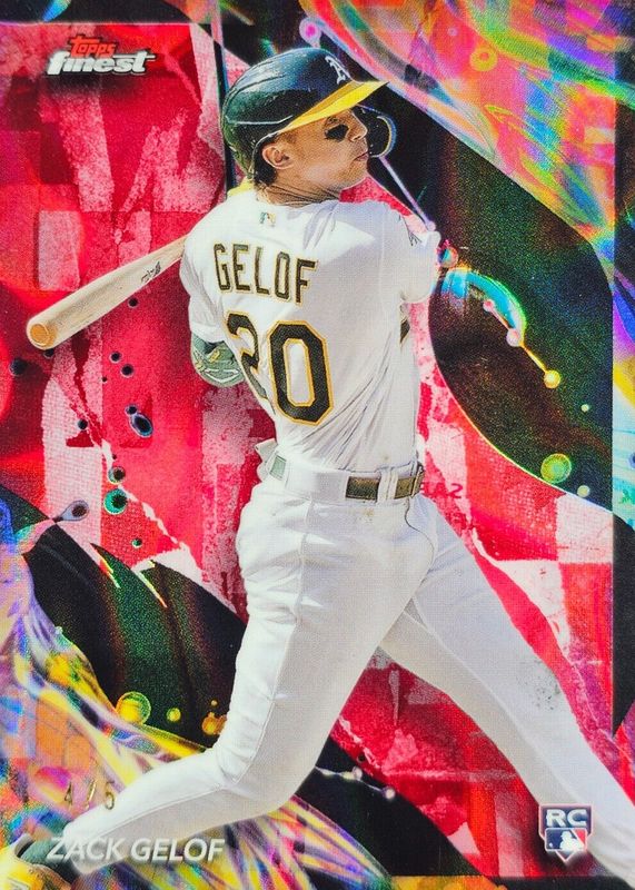 This card is 1 of 45 Zack Gelof's card variations in the 2024 Topps Finest set being tracked by Sports Card Investor, including Common, Rare, Uncommon, Common - Checkerboard Refractor, and Common - Refractor.