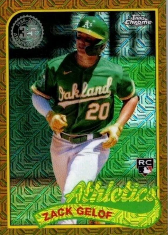 The Zack Gelof 2024 Topps Silver Pack #T89C-1 1989 Chrome Promo - Gold Refractor (Series 1) /50 Rookie card in Raw condition has not changed in price in the last 30 days and was last sold for $31.00 .