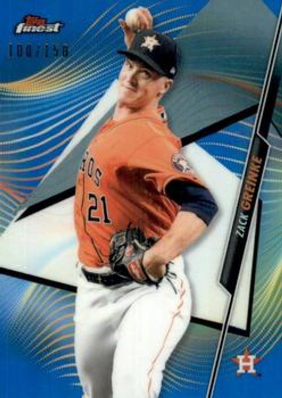 The Zack Greinke 2020 Topps Finest #90 Blue Refractor /150 card is 1 of 9 Zack Greinke's card variations in the 2020 Topps Finest set being tracked by Sports Card Investor, including Base, Refractor, Purple Refractor /250, Green Refractor /99, and Gold Refractor /50.