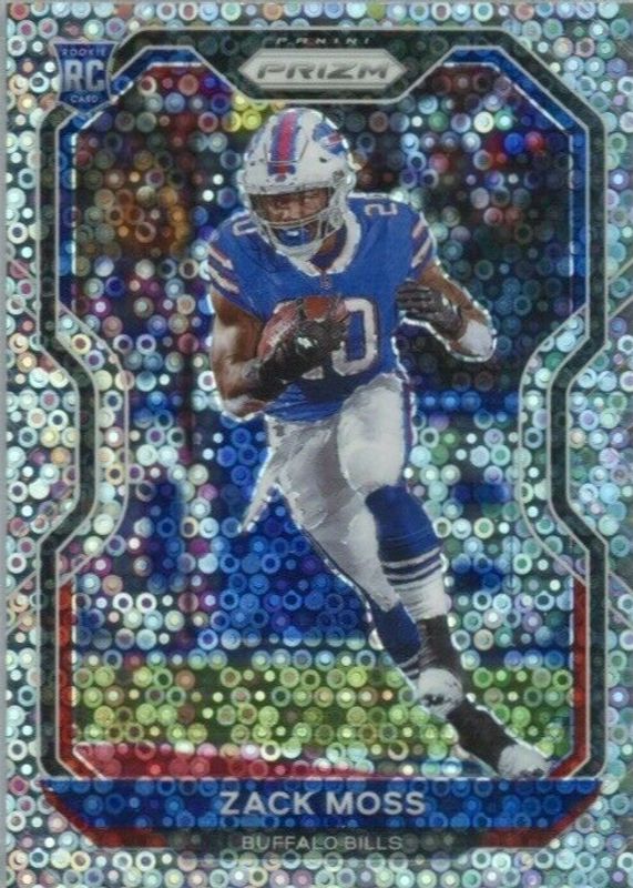 This card is 1 of 61 Zack Moss' card variations in the 2020 Prizm set being tracked by Sports Card Investor, including Base, Disco, Green, Lazer, and Light Blue.